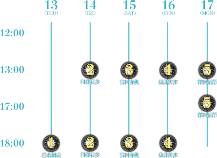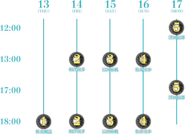〇ロビー開場・物販開始・客席開場時間は下記を予定しております。当日の状況により、時間変更の可能性もございます。予めご了承ください。